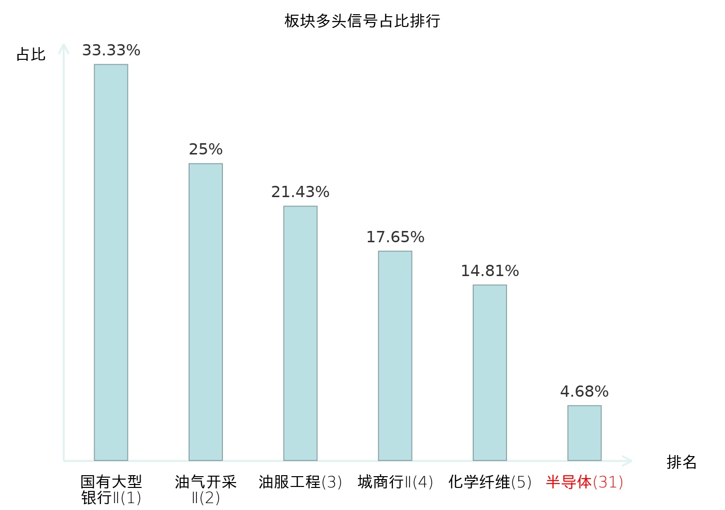 从主力宝信号数据分析,利扬芯片所属的半导体板块中共8只股票发出主力多头信号,主力多头信号占比在全行业中排名第31位,较昨日上升20位。排名越高表明主力当日买入意愿越强。全市场所有行业板块中,国有大型银行Ⅱ板块的主力多头信号占比最高,位居第一。国有大型银行Ⅱ板块名次提升最快,较昨日上升124位。这些变化反映了主力资金在不同行业间的偏好调整,为投资者提供了关于市场趋势的重要线索。
