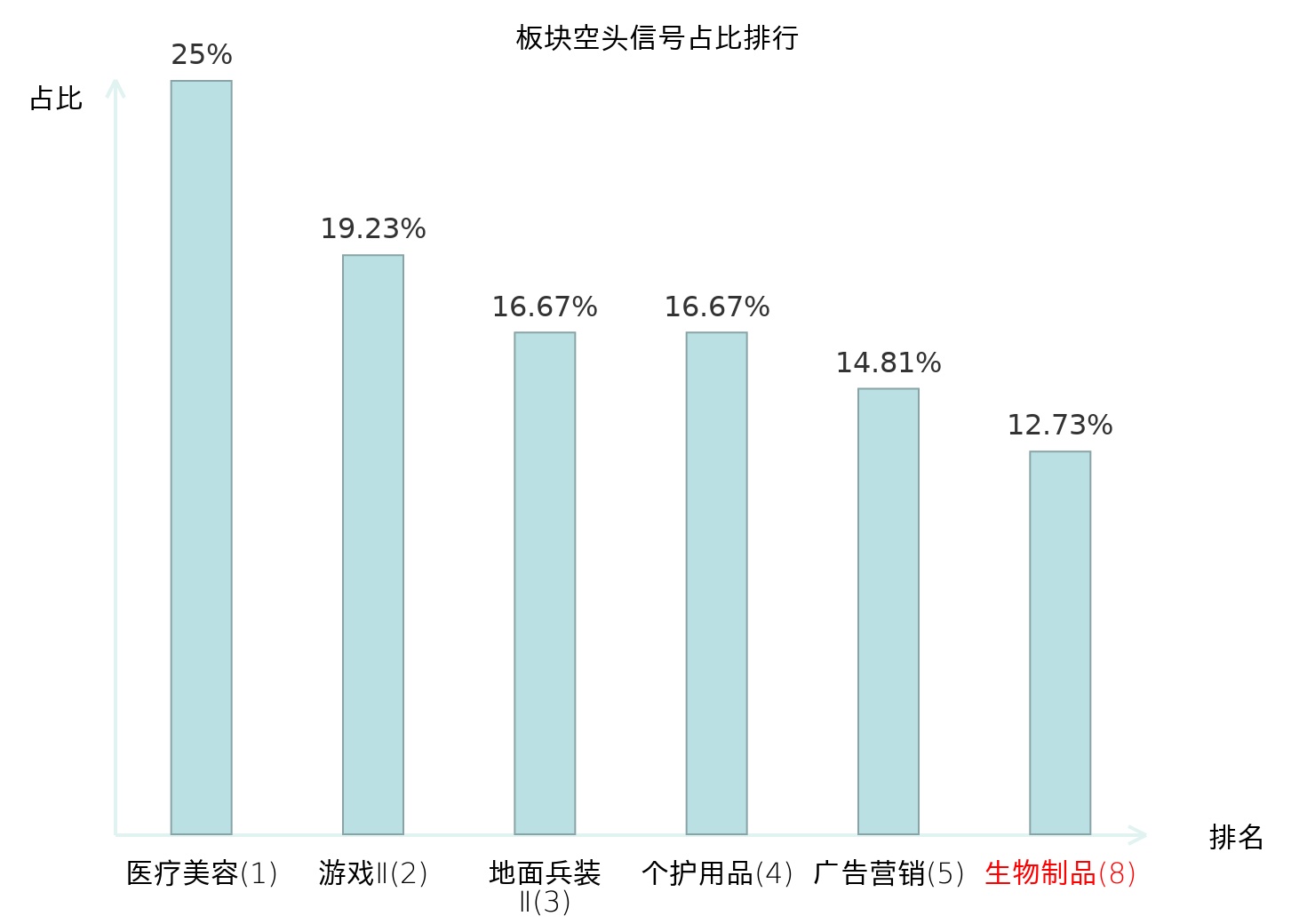 全市场所有行业板块中主力空头信号占比排名中,医疗美容板块位居第一。游戏Ⅱ板块名次提升最快,较昨日上升122位。