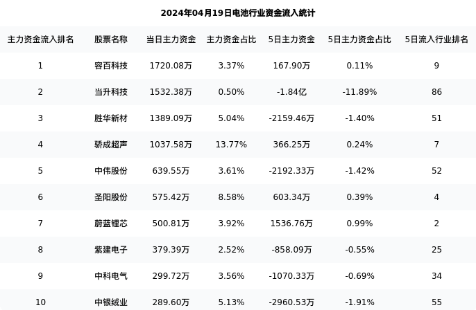 从主力资金流向来看,电池行业今日主力资金流入63.99亿元,在所有申万二级行业中排名:55/131。