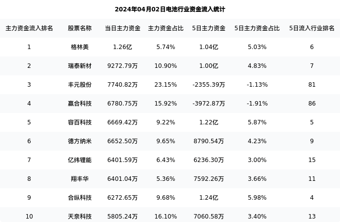 从主力资金流向来看,电池行业今日主力资金流入133.28亿元,在所有申万二级行业中排名:79/131。