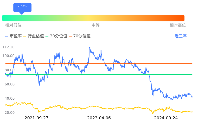 松井股份当前市盈率PETTM为42.80,在所属的化学制品中,市盈率PETTM排93名。前5名分别为同德化工PETTM4.37、梅花生物PETTM8.28、星湖科技PETTM9.30、建业股份PETTM9.38、嘉化能源PETTM9.45。从PETTM估值走势数据来看,松井股份当前市盈率PETTM为42.80,超过近3年7.83%的历史数据。