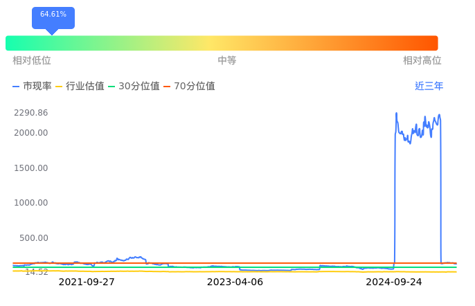 2024年09月24日,松井股份上涨2.62%收于36.43,今日成交金额2292.95万。下文将从市盈率PETTM、市净率PB、市现率3个角度去分析公司估值情况。