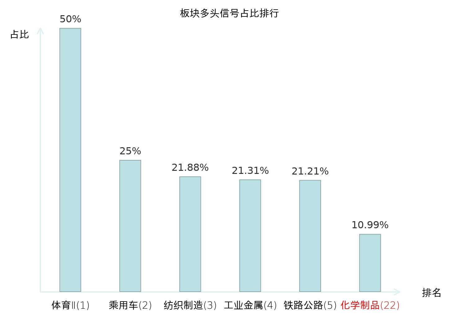 全市场所有行业板块中主力多头信号占比排名中,体育Ⅱ板块位居第一。体育Ⅱ板块名次提升最快,较昨日上升130位。