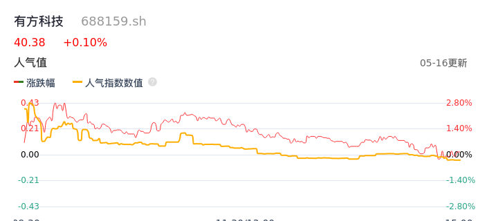 05月16日,有方科技收报40.38,股价涨幅0.10%,成交金额5440.74万元,换手率1.45%。