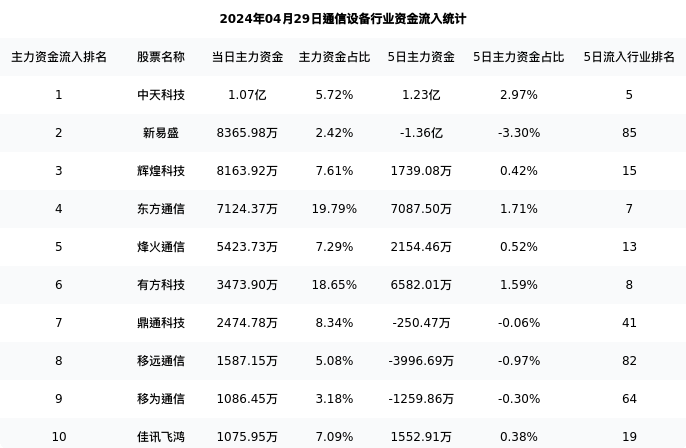 从主力资金流向来看,通信设备行业今日主力资金流入154.45亿元,在所有申万二级行业中排名:85/131。