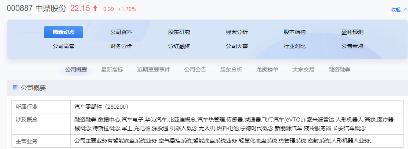 今天为大家带来的是中鼎股份,我们先来了解一下这家公司是做什么的,我们通过公司概要可以清楚的看到:公司所属行业是汽车零部件。