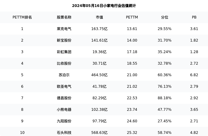 从估值角度看:石头科技最新市盈率PETTM为25.32,在行业内排名10/20,处于58.74分位。