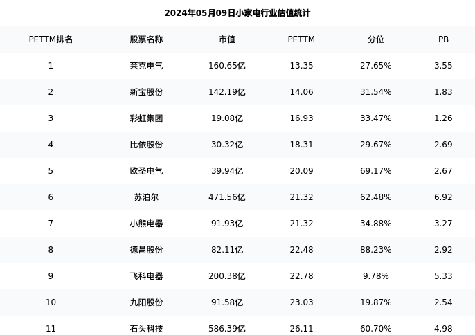 从估值角度看:石头科技最新市盈率PETTM为26.11,在行业内排名11/20,处于60.70分位。