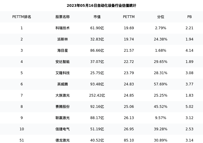 从估值角度看:德龙激光最新市盈率PETTM为85.10,在行业内排名51/70,处于30.89分位。