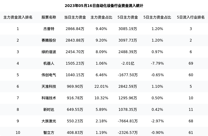 从主力资金流向来看,自动化设备行业今日主力资金流入23.85亿元,在所有申万二级行业中排名:16/131。