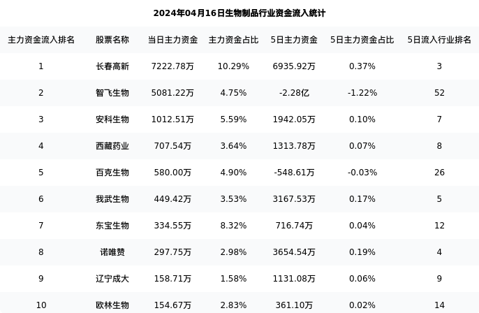 从主力资金流向来看,生物制品行业今日主力资金流入19.65亿元,在所有申万二级行业中排名:23/131。