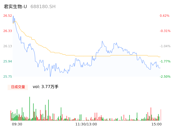 04月12日,君实生物-U收报25.86,股价涨幅-2.08%,成交金额9795.31万元,换手率0.49%。
