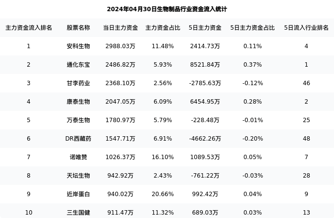 从主力资金流向来看,生物制品行业今日主力资金流入21.19亿元,在所有申万二级行业中排名:120/131。