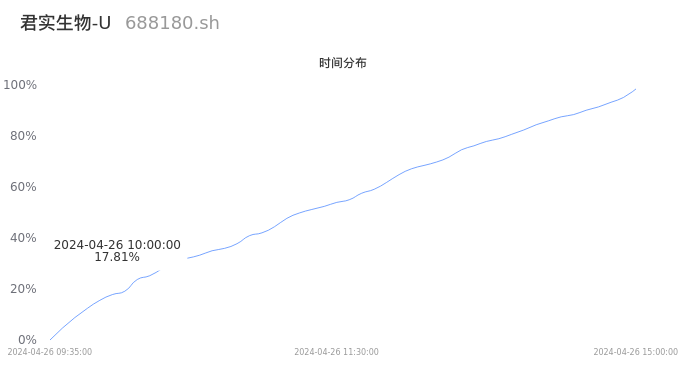 根据成交分布分析,该股票当天放量成交,成交清淡。时间上看,早盘前半小时成交量占据当天总成交量的17.81%;价格上看,成交呈现右偏峰。成交分布分析主要研究股票成交的分布特性,不具有预测功能,请知悉。
