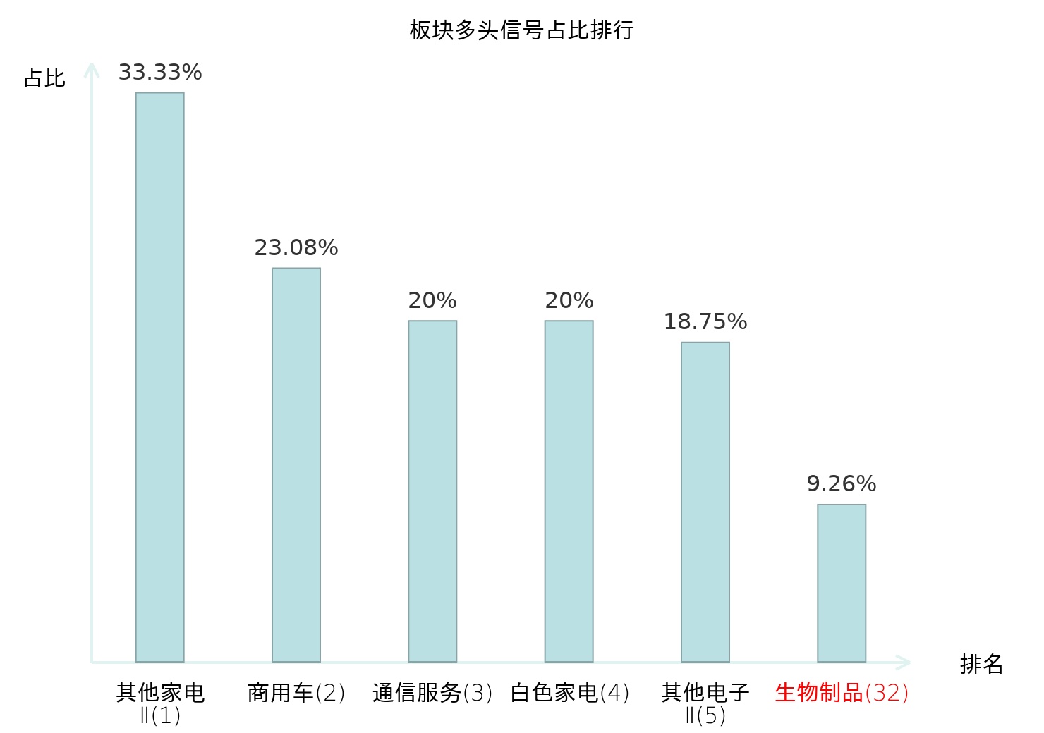 全市场所有行业板块中主力多头信号占比排名中,其他家电Ⅱ板块位居第一。其他家电Ⅱ板块名次提升最快,较昨日上升129位。