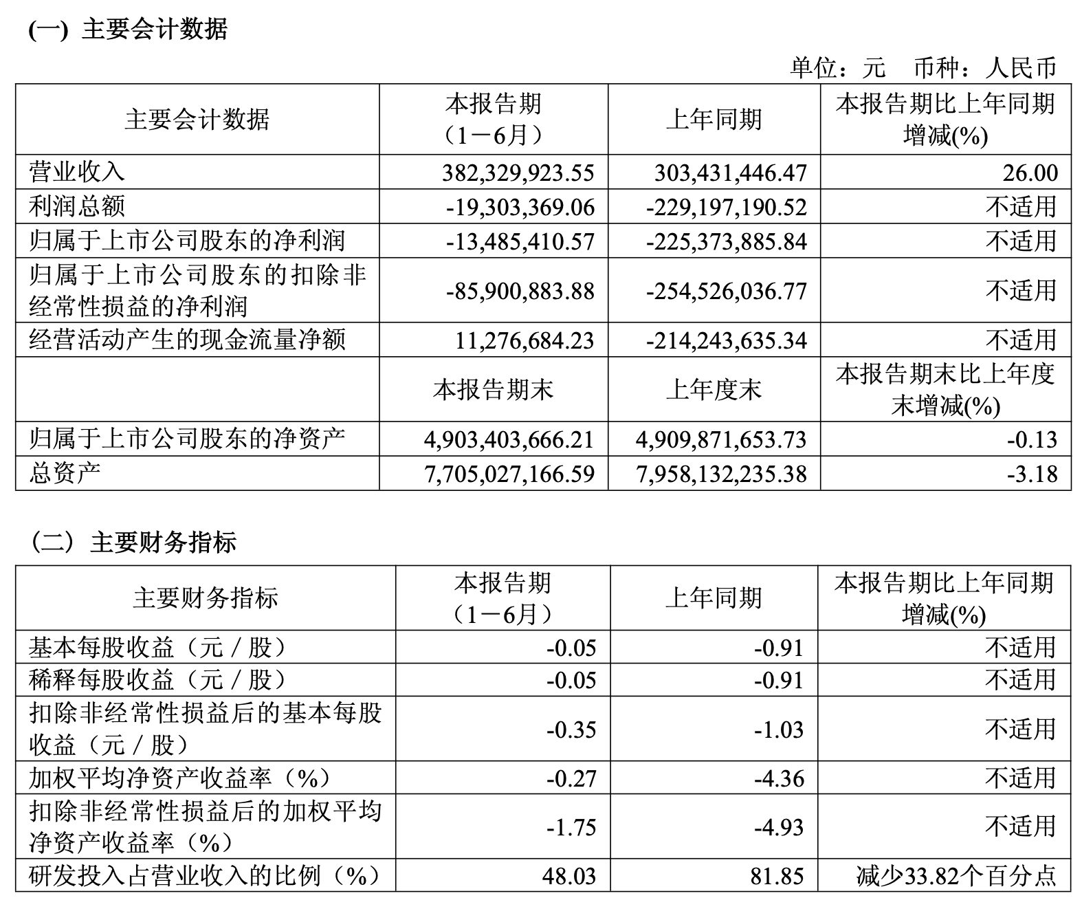 报告期内,其研发投入为1.84亿元,较上年同期下降26.06%;研发投入总额占营收比例48.03%,同比减少33.82个百分点,主要因公司将研发资源聚焦于高潜研发项目,进一步提升了研发效率。