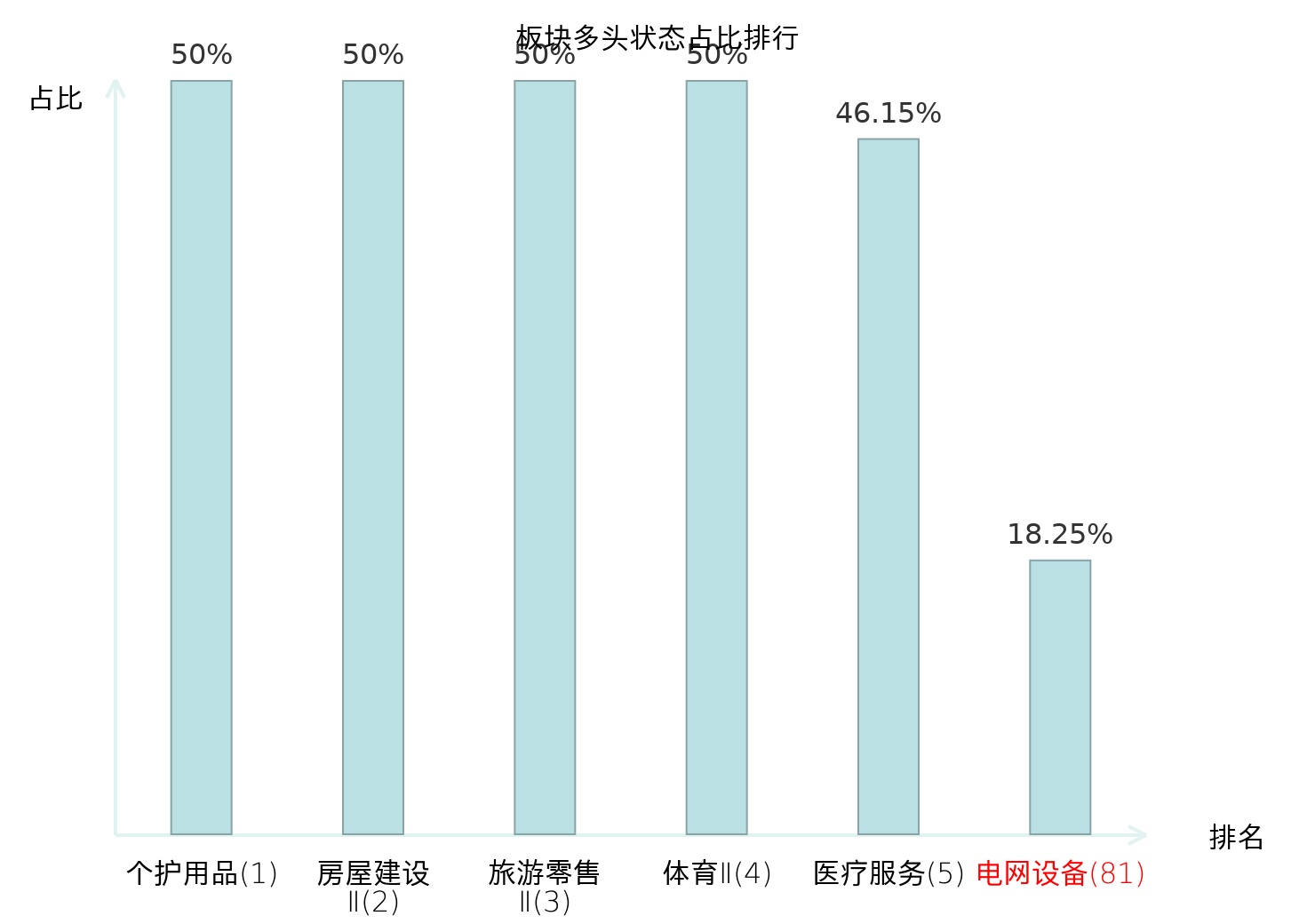 全市场所有行业板块中主力多头状态占比排名中,个护用品板块位居第一。影视院线板块名次提升最快,较昨日上升56位。