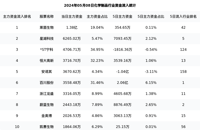 从主力资金流向来看,化学制品行业今日主力资金流入84.11亿元,在所有申万二级行业中排名:95/131。