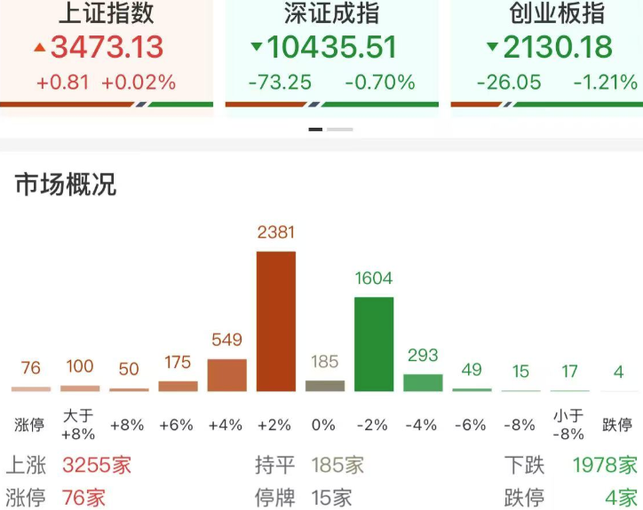 市场全天震荡调整,沪指尾盘翻红,创业板指领跌。沪深两市全天成交额1.21万亿,较上个交易日缩量2199亿。盘面上,电力、电网股逆势爆发,华银电力等10余股涨停;稳定币概念股再度活跃,青岛金王等涨停;地产股展开反弹,渝开发涨停。截至收盘,沪指涨0.02%,深成指跌0.7%,创业板指跌1.21%。涨跌幅方面,PCB概念股展开调整,逸豪新材跌超5%。板块方面,电力、电网设备、稳定币、房地产等板块涨幅居前,生物制品、PCB、CPO、创新药等板块跌幅居前。