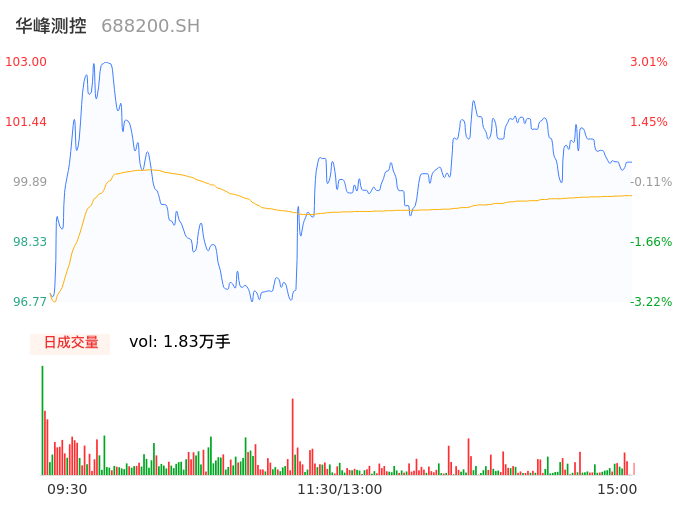 04月26日,华峰测控收报100.56,股价涨幅0.57%,成交金额1.83亿元,换手率1.35%。