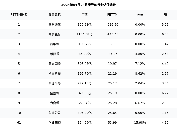 从估值角度看:华峰测控最新市盈率PETTM为53.99,在行业内排名57/153,处于15.98分位。