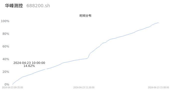 688200华峰测控2024年04月23日成交1.09万手,成交金额1.07亿元,相较昨日放量2029手,换手率0.81%,成交清淡。