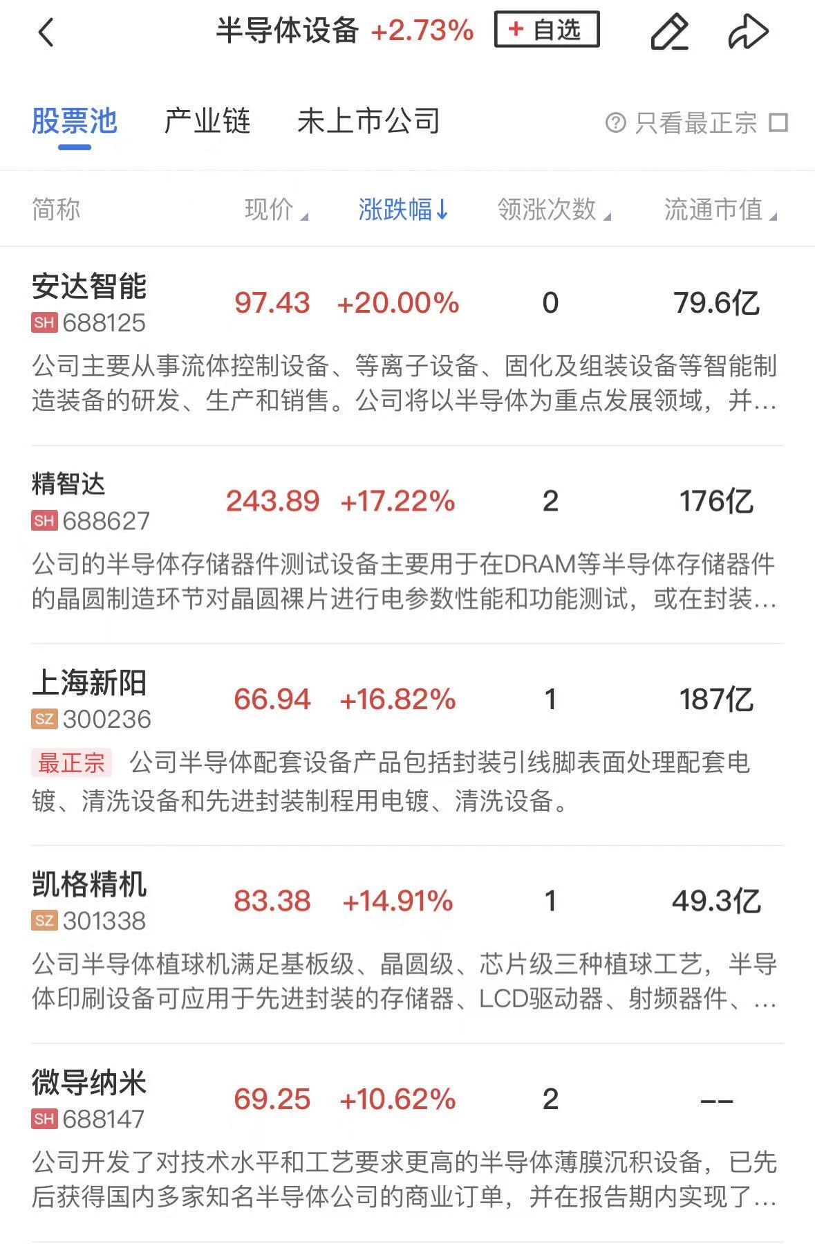 半导体设备同样于盘中走强,珂玛科技20CM涨停,上海新阳、安森股份、长川科技、京仪装备、拓荆科技、华峰测控等涨超6%