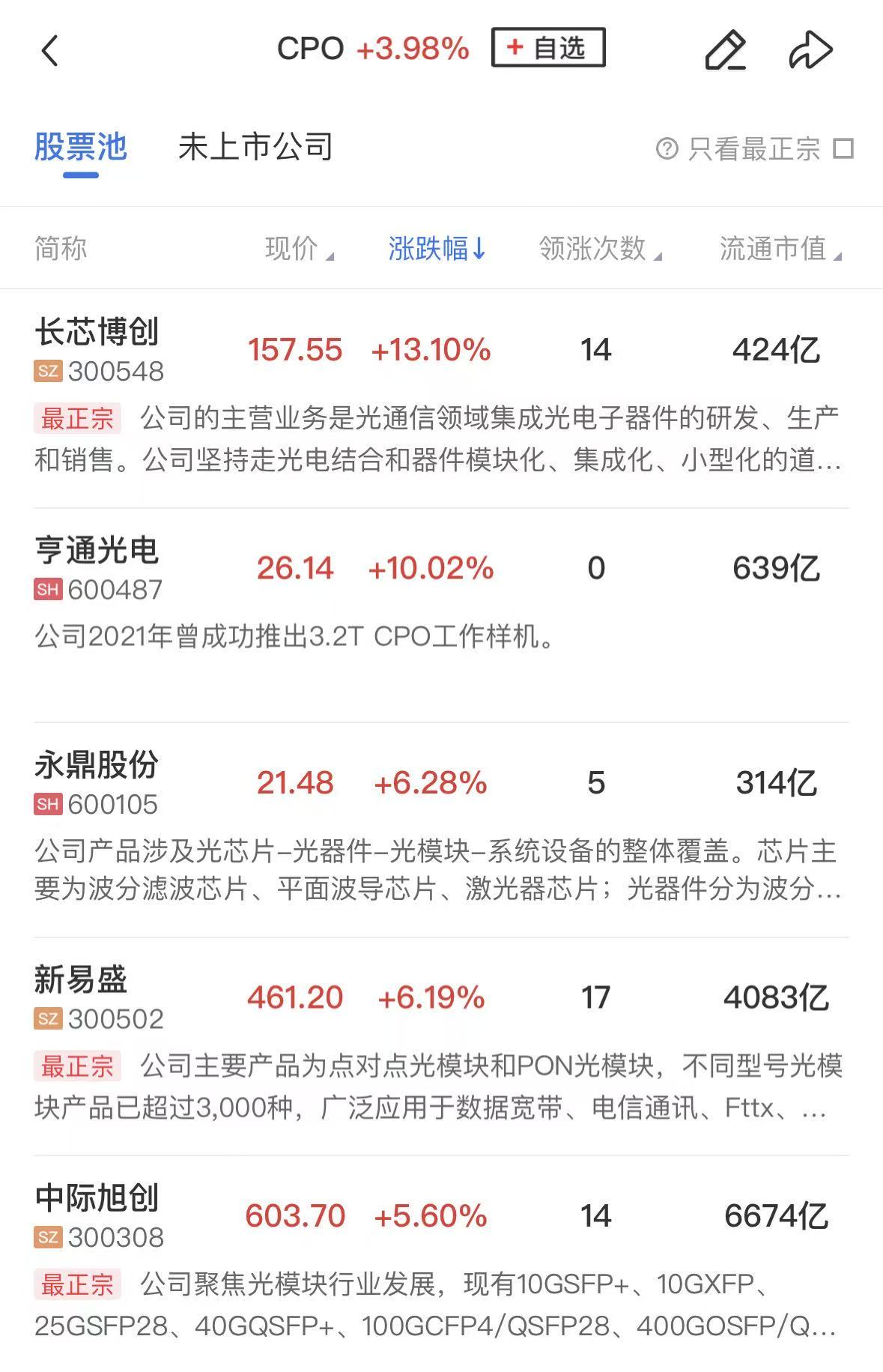 算力硬件板块再度走强,特发信息、亨通光电、长飞光纤涨停,凯格精机、致尚科技、长芯博创等涨超10%,“易中天”光模块三巨头集体上涨。