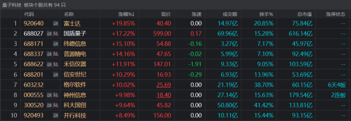 注:量子科技板块表现活跃(截至10月30日收盘)