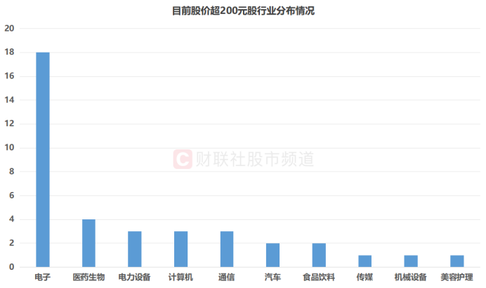 注:目前股价超200元股行业分布情况(截至10月30日收盘)