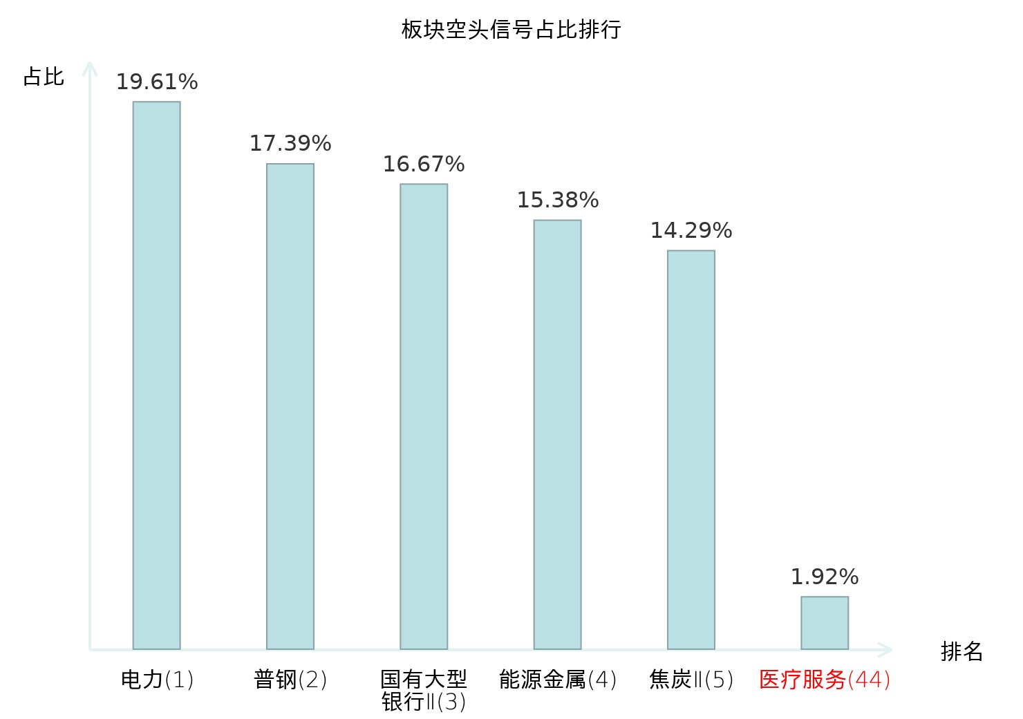 全市场所有行业板块中主力空头信号占比排名中,电力板块位居第一。服装家纺板块名次提升最快,较昨日上升107位。