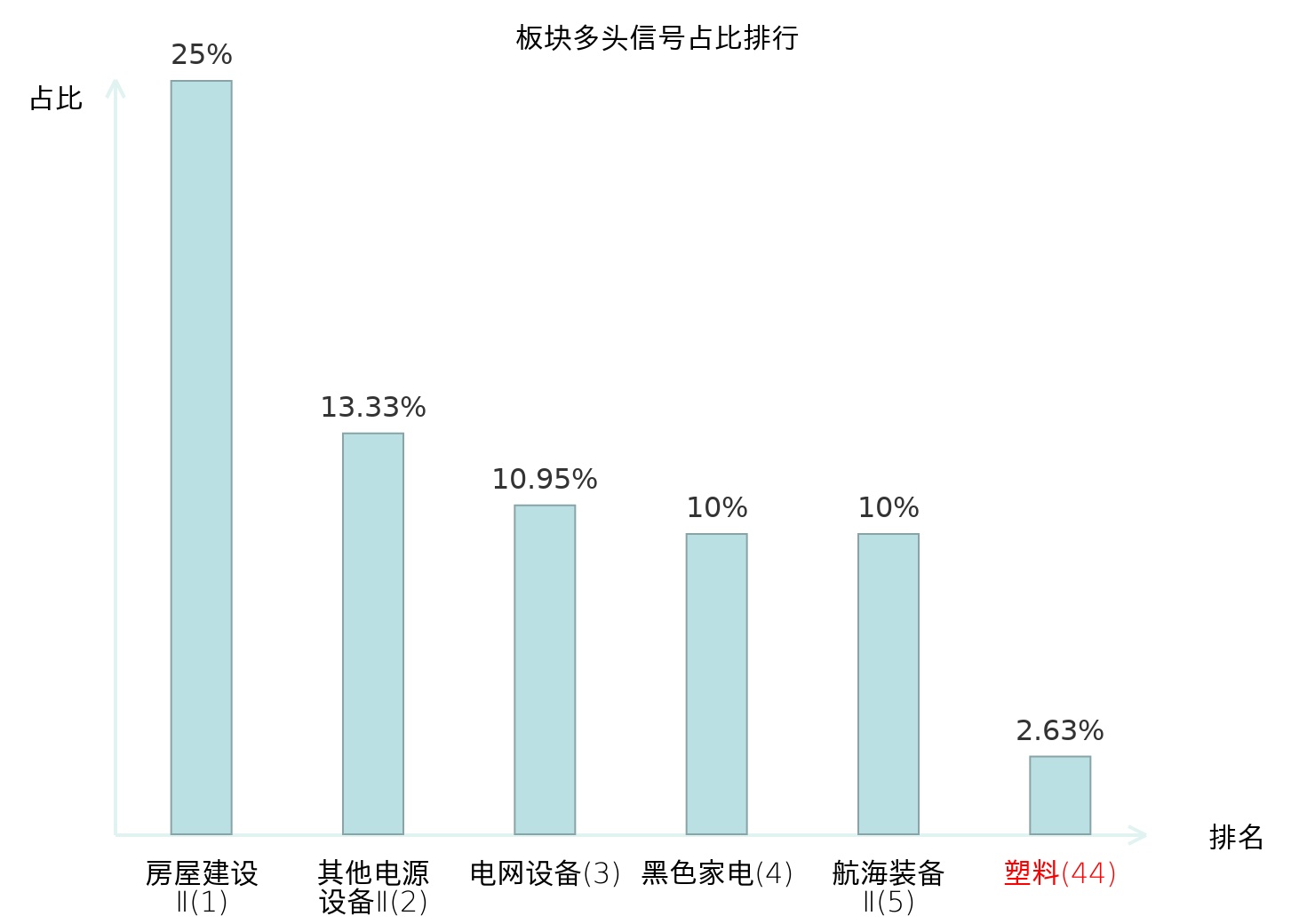全市场所有行业板块中主力多头信号占比排名中,房屋建设Ⅱ板块位居第一。航海装备Ⅱ板块名次提升最快,较昨日上升112位。