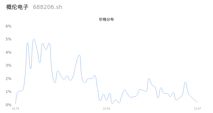 根据成交分布分析,该股票当天放量成交,成交清淡。时间上看,早盘前半小时成交量占据当天总成交量的15.33%;价格上看,成交呈现左偏峰。成交分布分析主要研究股票成交的分布特性,不具有预测功能,请知悉。