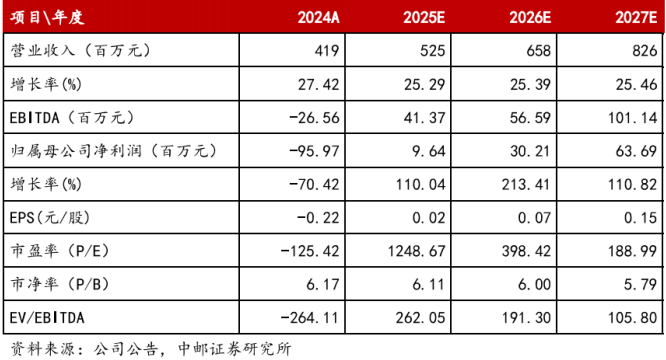 预计公司2025/2026/2027年分别实现收入5.25/6.58/8.26亿元,实现归母净利润分别为0.1/0.3/0.6亿元,维持“买入”评级。