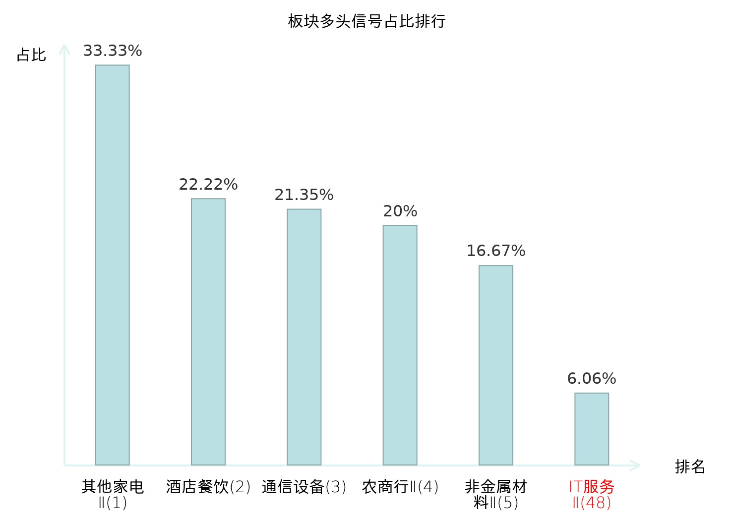 全市场所有行业板块中主力多头信号占比排名中,其他家电Ⅱ板块位居第一。其他家电Ⅱ板块名次提升最快,较昨日上升128位。