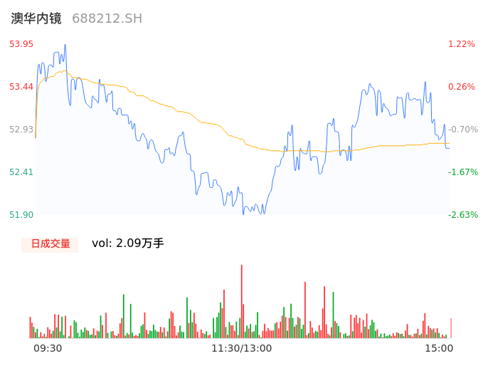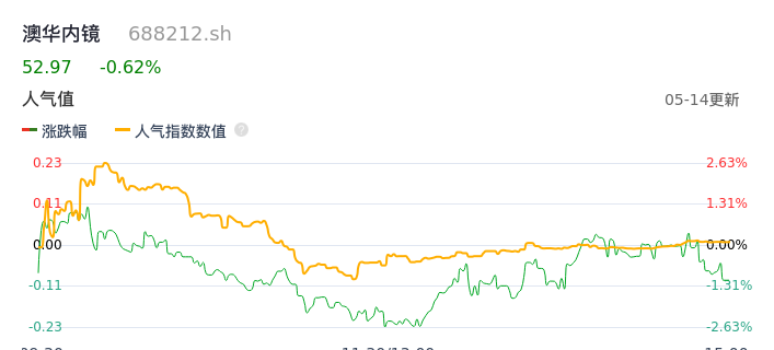05月14日,澳华内镜收报52.97,股价涨幅-0.62%,成交金额1.10亿元,换手率2.27%。