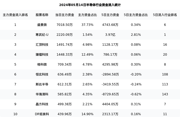 从主力资金流向来看,半导体行业今日主力资金流入73.27亿元,在所有申万二级行业中排名:10/131。
