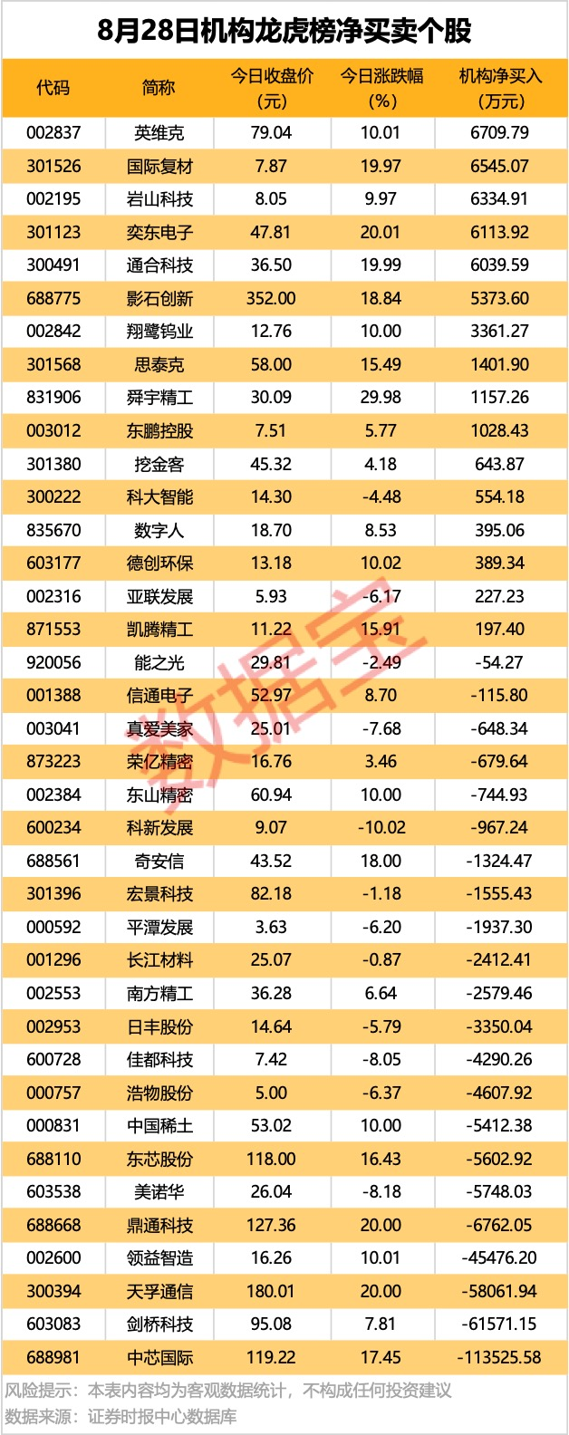 龙虎榜揭秘:10股机构净买入均超千万元