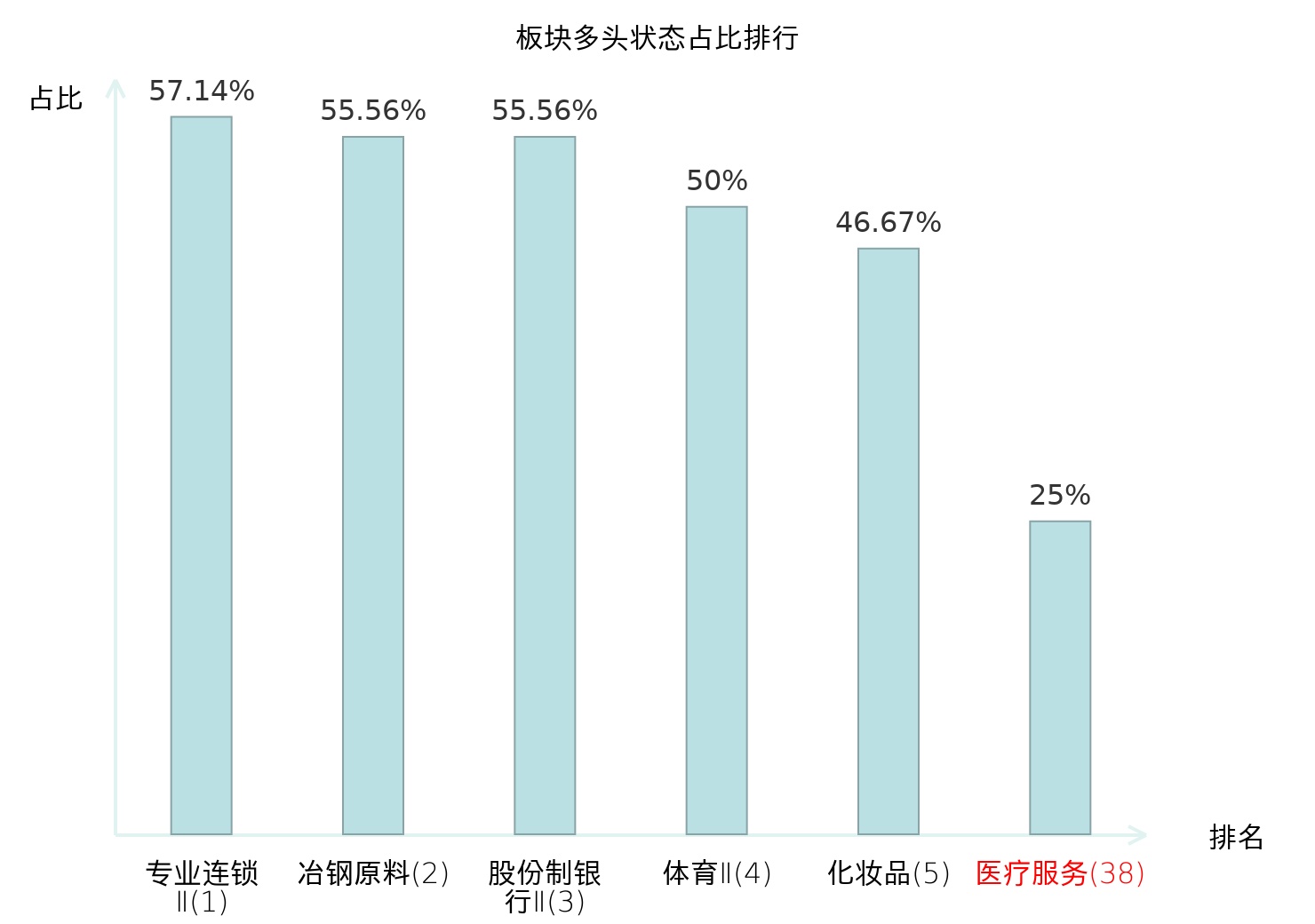 全市场所有行业板块中主力多头状态占比排名中,专业连锁Ⅱ板块位居第一。乘用车板块名次提升最快,较昨日上升85位。
