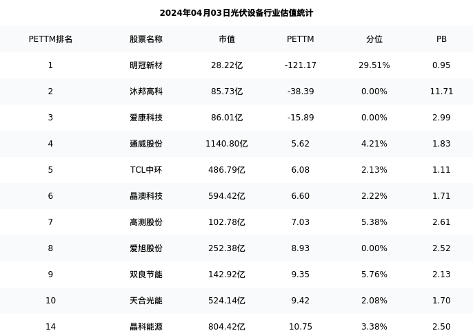 从估值角度看:晶科能源最新市盈率PETTM为10.75,在行业内排名11/57,处于3.38分位。