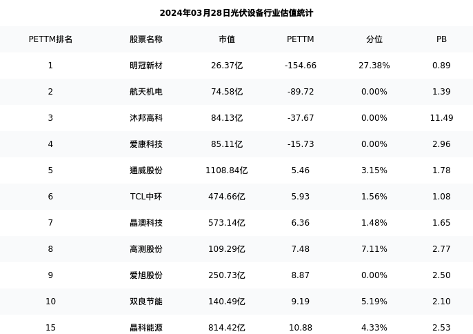 从估值角度看:晶科能源最新市盈率PETTM为10.88,在行业内排名11/57,处于4.33分位。