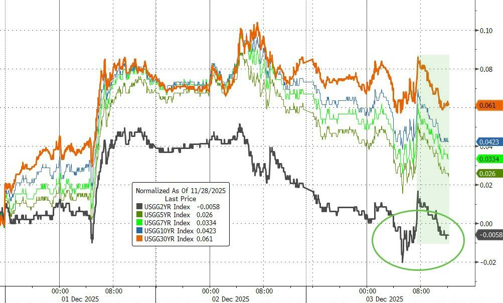 美股盘前,据华尔街见闻,11月ADP就业人数意外减少3.2万人,创下2023年3月以来最大降幅,显示出劳动力市场正在迅速降温。有报道称微软因需求问题下调了AI软件的销售配额,一度拖累微软盘前下跌。