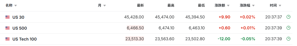 截至发稿,道琼斯指数期货涨0.02%,标普500指数期货涨0.01%,纳斯达克100指数期货跌0.05%。