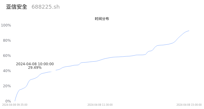 根据成交分布分析,该股票当天放量成交,成交清淡。时间上看,早盘前半小时成交量占据当天总成交量的29.49%;价格上看,成交呈现左偏峰。成交分布分析主要研究股票成交的分布特性,不具有预测功能,请知悉。