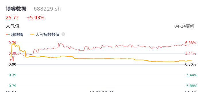 04月24日,博睿数据收报25.72,股价涨幅5.93%,成交金额1922.99万元,换手率1.71%。
