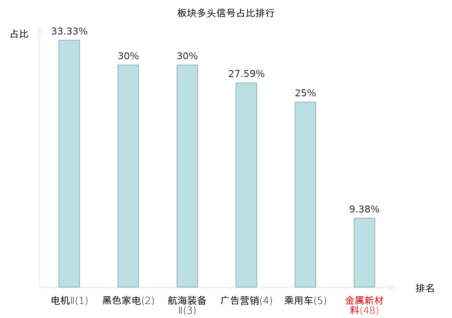 全市场所有行业板块中主力多头信号占比排名中,电机Ⅱ板块位居第一。乘用车板块名次提升最快,较昨日上升114位。