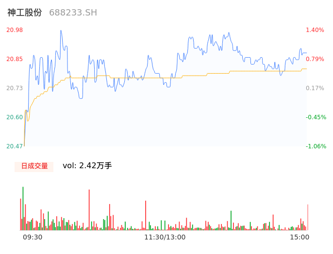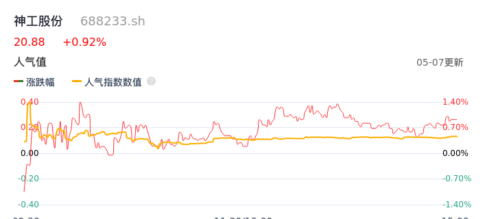 05月07日,神工股份收报20.88,股价涨幅0.92%,成交金额5028.20万元,换手率1.42%。