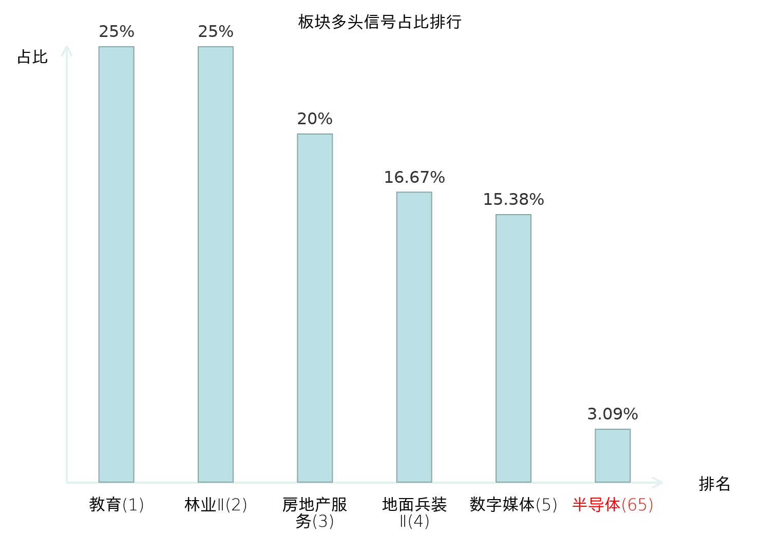 全市场所有行业板块中主力多头信号占比排名中,教育板块位居第一。林业Ⅱ板块名次提升最快,较昨日上升125位。