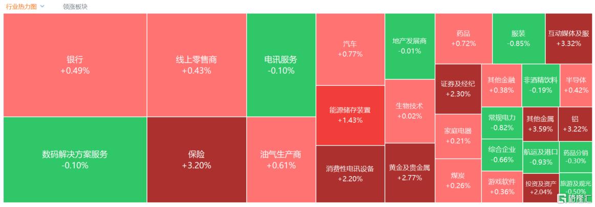 盘面上,午后大部分权重科技股拉升上涨,尤其是百度午后开盘直线涨近8%收涨5%;同时大金融股(保险、银行、券商)拉升助力大市上行,金融监管总局调整保险公司投资相关股票的风险因子,保险股涨幅最为明显;铜、铝、黄金等有色金属股继续活跃;新消费概念股、锂电池股、脑机接口概念股纷纷上涨。另一方面,航空股、餐饮股、濠赌股、燃气股逆势走低,此外,今日两只新股上市破发,遇见小面上市跌近28%,天域半导体上市跌超30%。