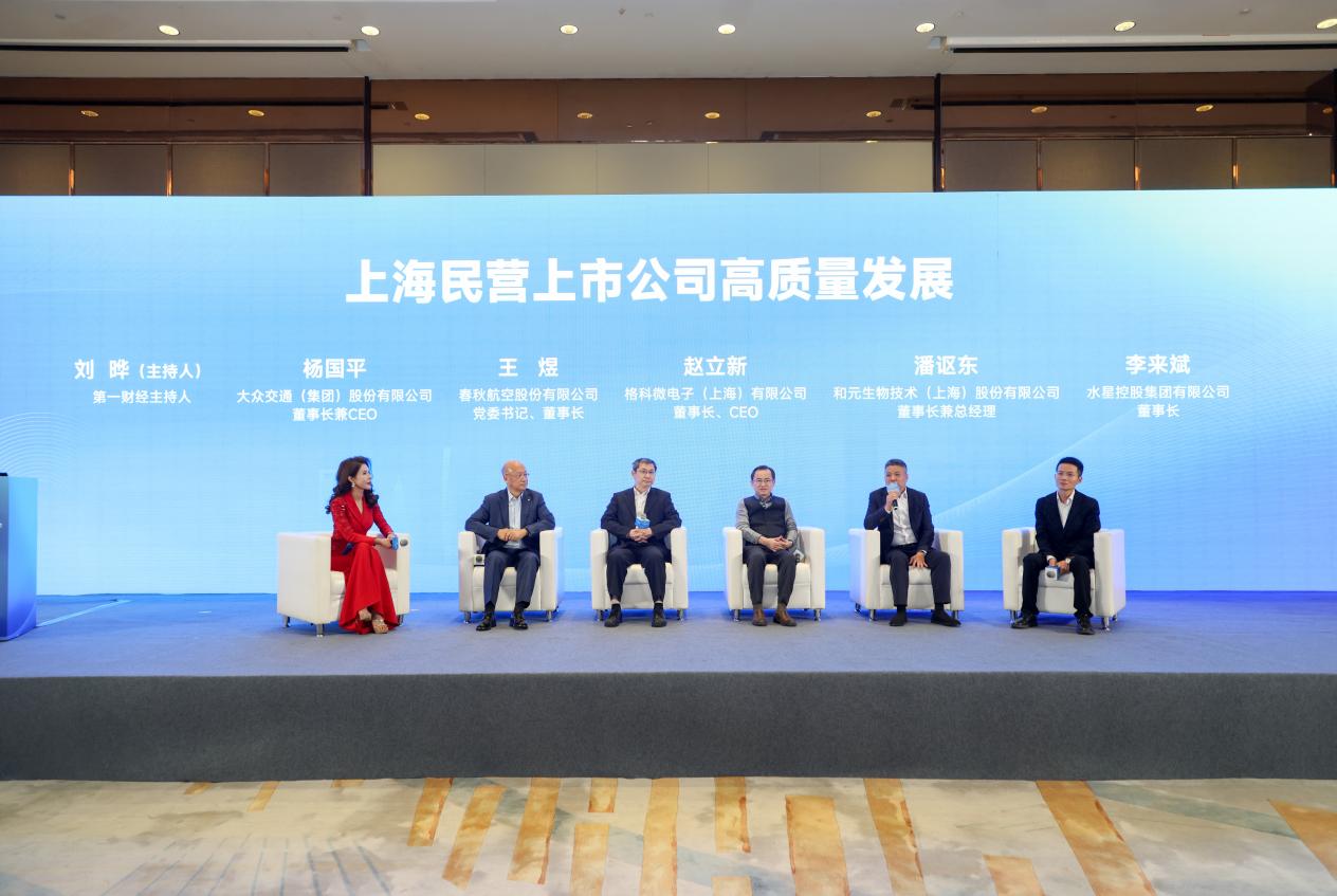 圆桌对话环节,大众交通春秋航空格科微和元生物、水星控股5家专委会主任单位以“上海民营上市公司高质量发展路径”为主题,围绕科技创新成果转化、提升核心竞争力、产业链业态融合等方面进行深入探讨。